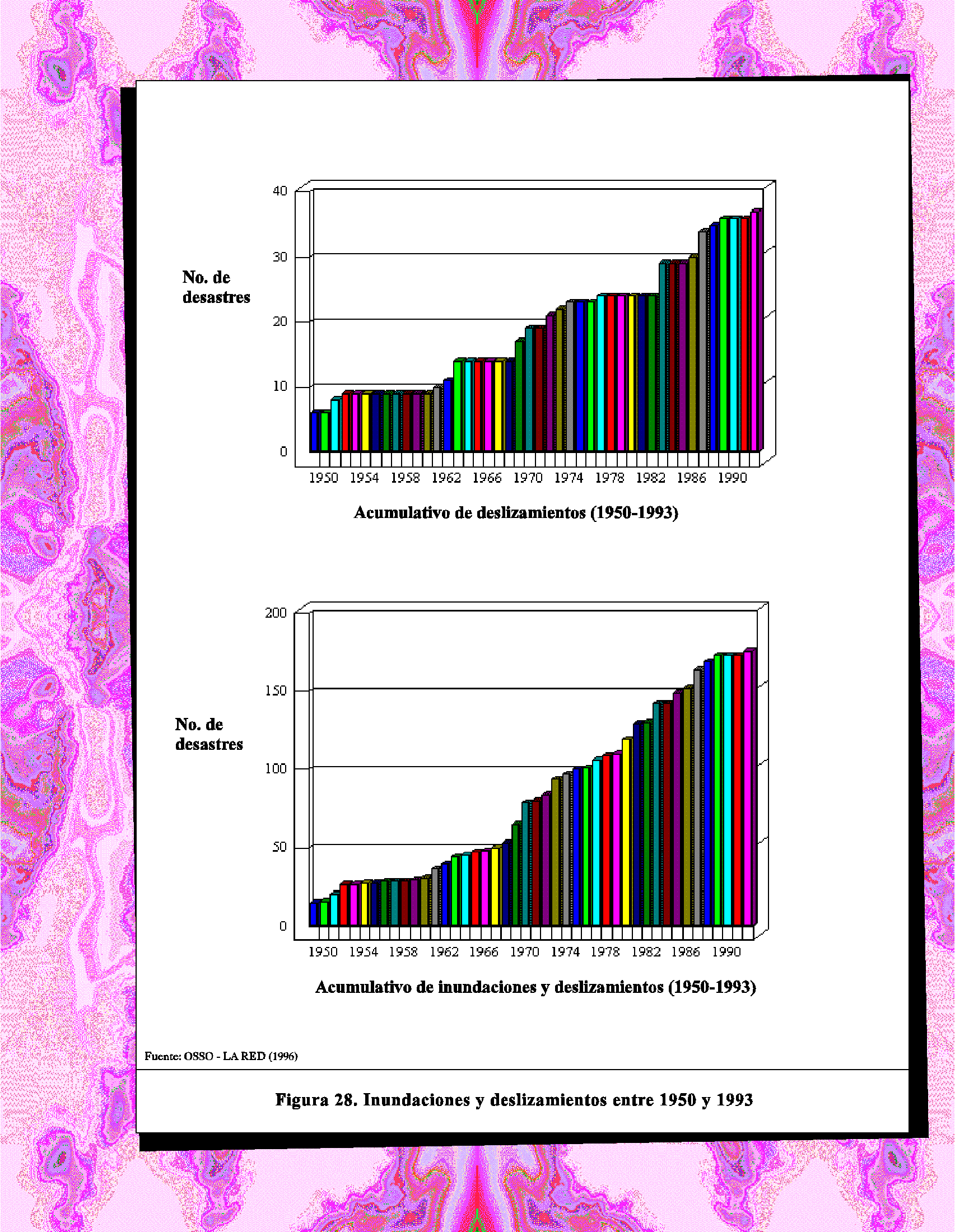 Para el menor número de reportes durante el lapso 1969-1983 no se dispone todavía de una explicación satisfactoria, aunque los datos disponibles indican, que durante los años 1971 y 1972 se registraron los mayores valores de precipitación en las estaciones hidrometeorológicas de la región, y es conocido que para la región andina, el número y frecuencia de ocurrencia de deslizamientos, está asociado a los picos mensuales de lluvia y a los años de mayores precipitaciones (OSSO para CORPES de Occidente, 1995).
