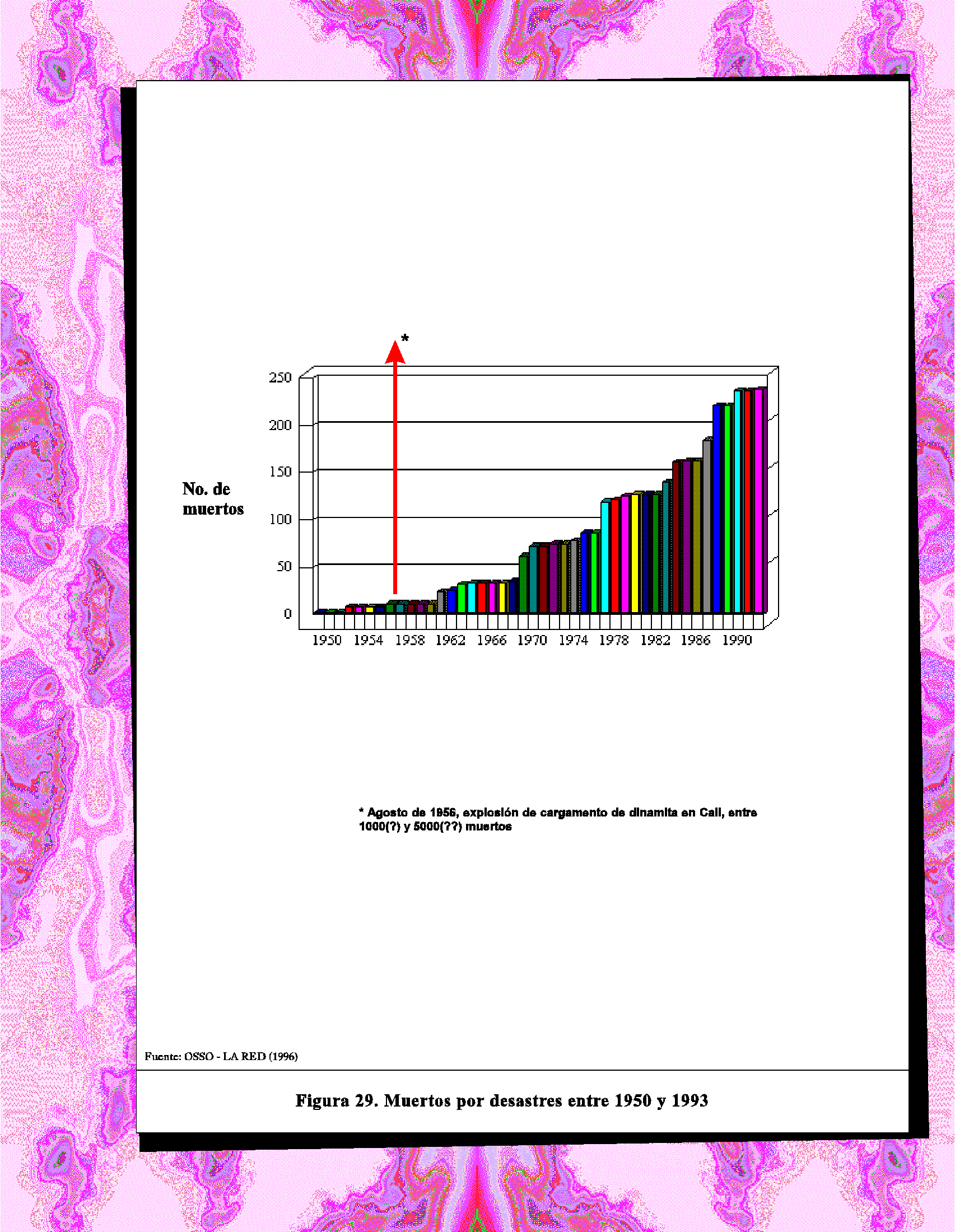Al igual que los datos de las figuras 26 a 29 y de la 32, debido a sus fuentes, los de ésta también son parciales. Se ha indicado la explosión de un cargamento de dinamita el 7 de agosto de 1956, el mayor desastre no natural en la historia de Colombia, y junto con las explosiones de redes de alcantarillado en Guadalajara (México) en 1992, uno de los mayores en América Latina.