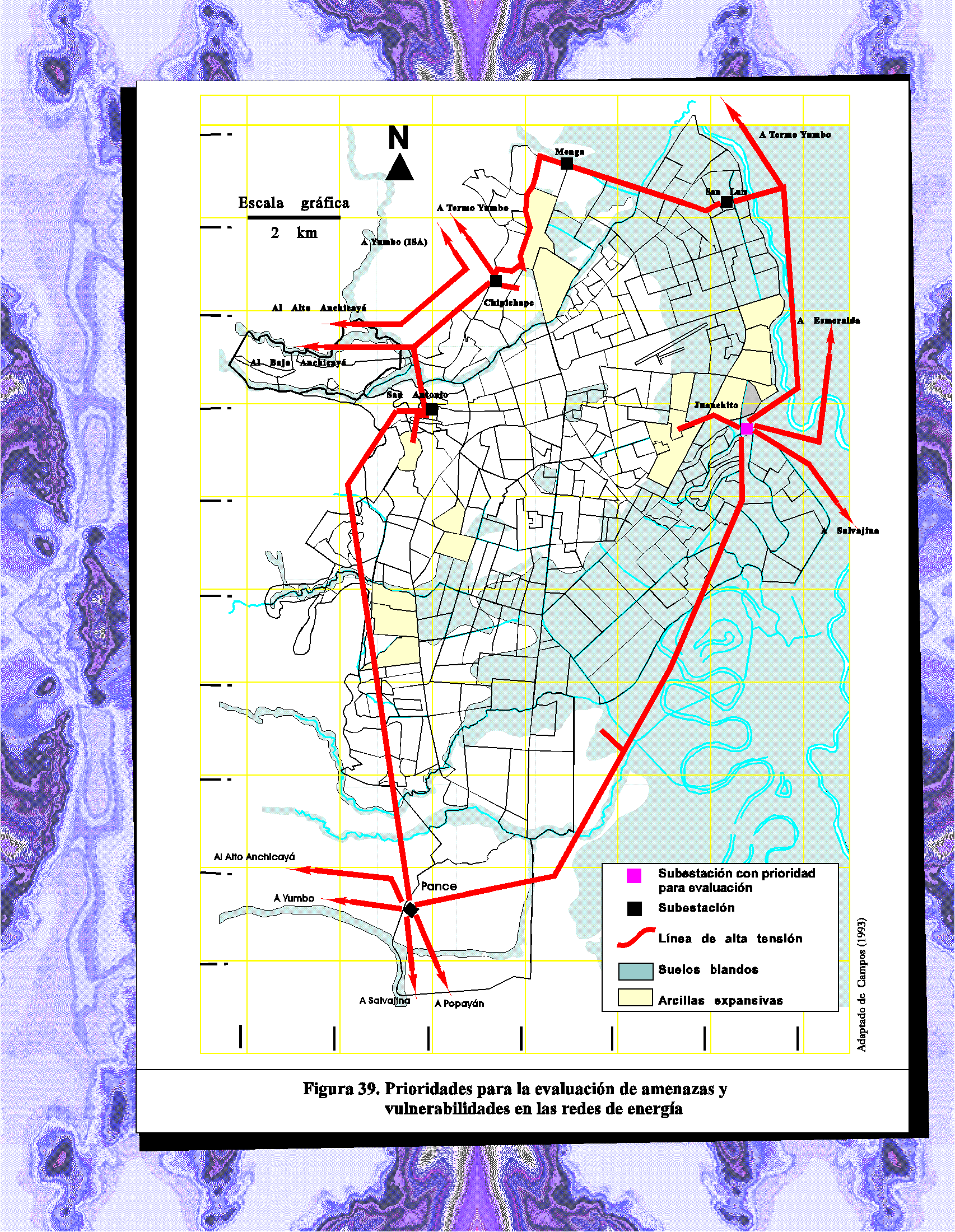 El sistema de energía tiene, frente a los de acueducto y de alcantarillado la ventaja de una mayor redundancia en las conexiones entre subestaciones, razón por la cual presenta una mayor flexibilidad funcional. En general los puntos más vulnerables son los sistemas de soporte de los equipos en las subestaciones.